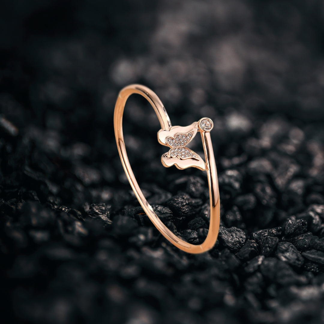 This enchanting bracelet features a delicate butterfly charm encrusted with sparkling crystals, paired with a single bezel-set crystal accent. Its open design and sleek rose gold finish evoke elegance and whimsy, making it a standout accessory.