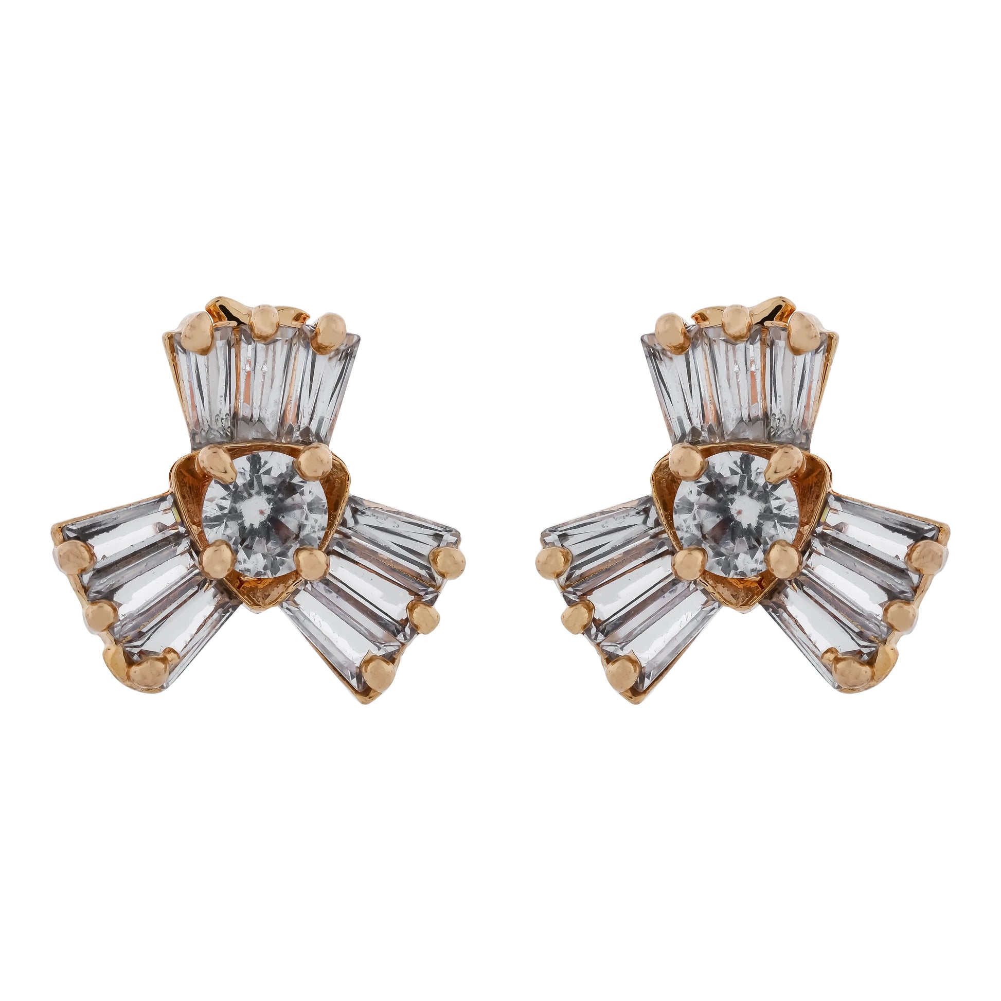 The baguette-cut crystals mimic a graceful sunburst, drawing attention to the luminous round centerpiece. Set in a warm gold base, these studs offer a dazzling contrast and refined brilliance.