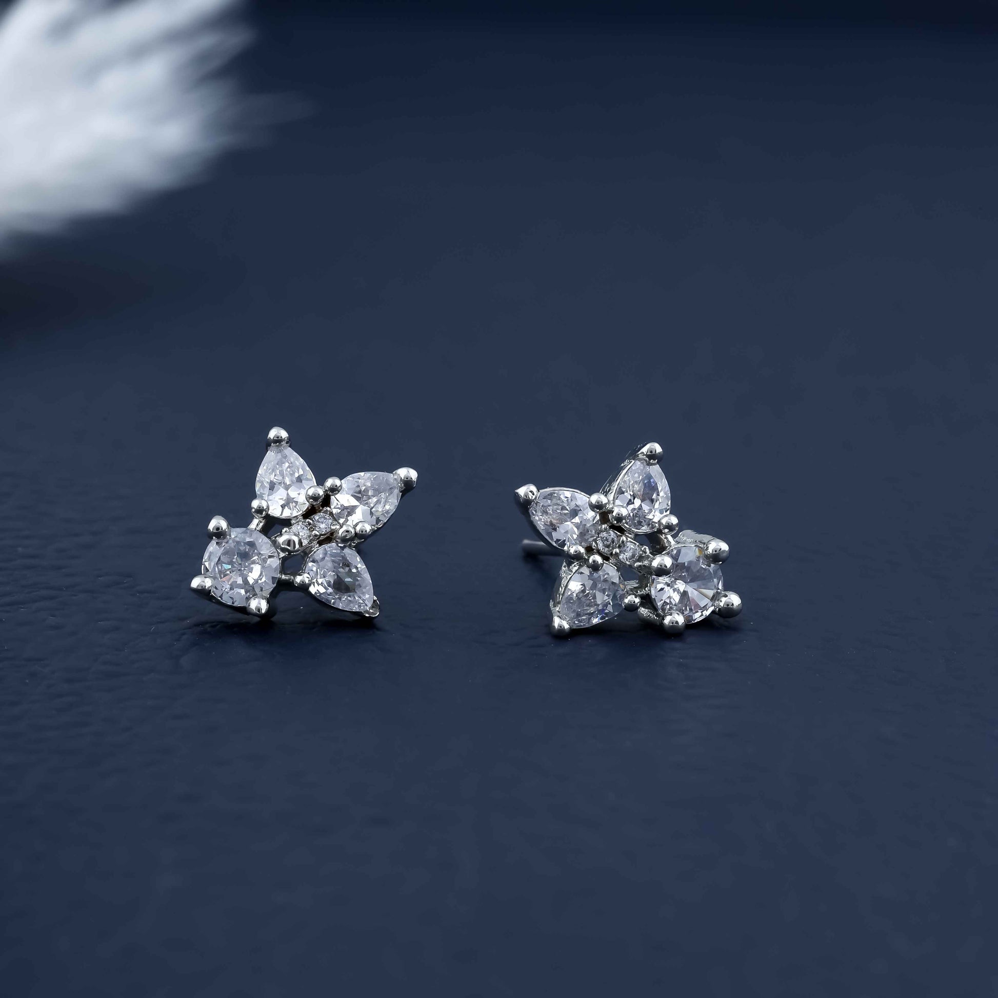 Luxe Bloom earrings are a radiant celebration of elegance, featuring a graceful floral-inspired cluster of sparkling pear and round-cut stones that shimmer with every movement.