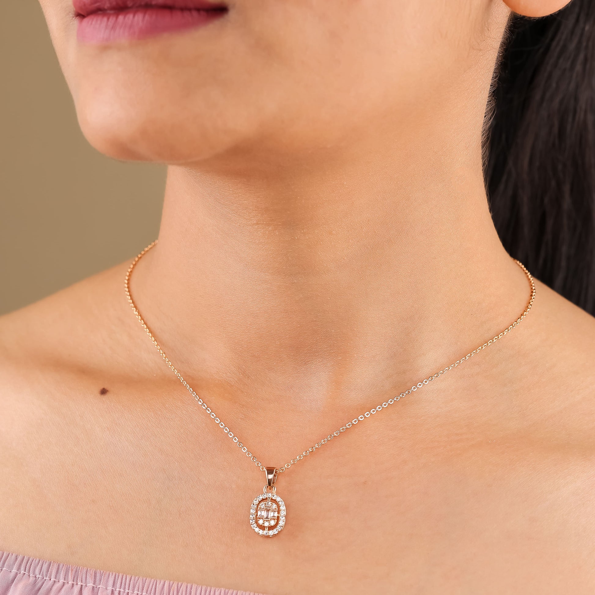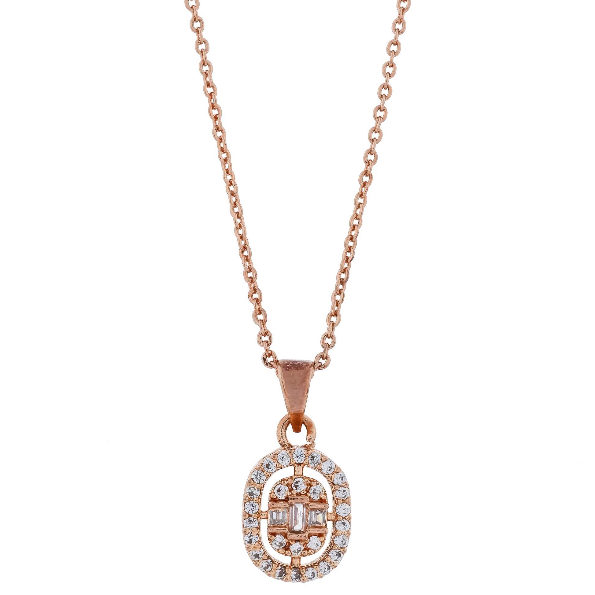 Add a touch of timeless elegance to your jewelry collection with this stunning vintage-inspired pendant necklace. Crafted in radiant rose gold, the intricately designed oval pendant features a dazzling arrangement of sparkling cubic zirconia stones that catch the light beautifully. The delicate chain enhances the refined design, making it the perfect accessory for elevating both everyday and evening looks. Whether you're dressing up for a special event or adding subtle glamour to your outfit, this piece exudes sophistication and charm.
