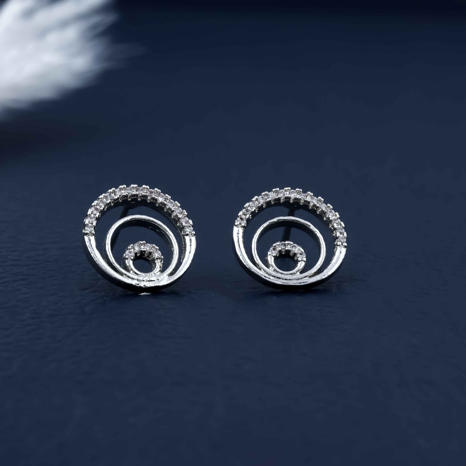 Elevate your elegance with Celestial Orbit, a contemporary take on timeless geometry. These mesmerizing stud earrings feature a trio of interlocking circles, symbolizing unity and infinite charm. Each ring is gracefully outlined, with the outermost circle embellished with sparkling white stones for a radiant finish.